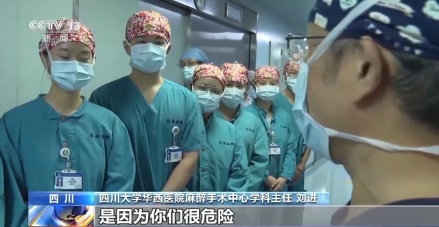 四川大学华西医院麻醉手术中心学科主任 刘进:知不知道为什么戴红帽子,是因为你们很危险,但是这个危险每个人都会经过这样的阶段,40年前我也经过了这样的阶段。