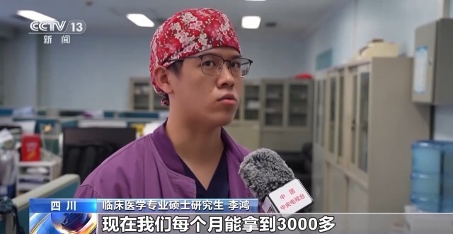 临床医学专业硕士研究生 李鸿:现在我们每个月能拿到3000多,后面每年可能会涨500块。稍微还是偏低,因为毕竟工作强度这么大,每天该做的事情做了这么多。