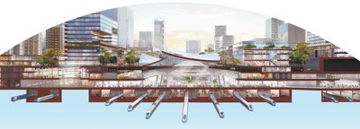 如此巨大的地下主体结构主要包括三层:地下三层,为城际车站站台与轨道层;地下二层,是城际车站候车厅和出站大厅;地下一层,为城际车站进站厅、城市公共空间和商业配套。