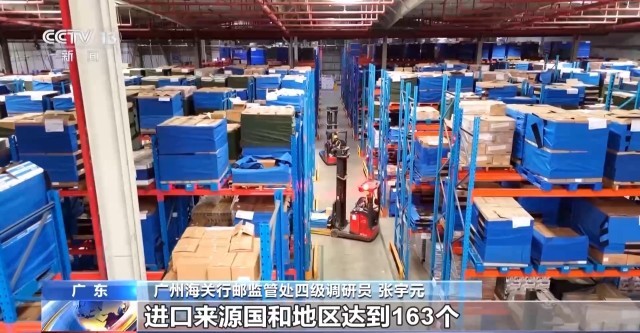 广州海关行邮监管处四级调研员 张宇元:目前,广州跨境电商零售进口商品主要为食品、化妆品、皮革制品,涉及税号1075个,进口来源国和地区达到163个,覆盖全球五大洲。