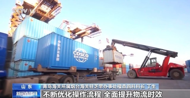 青岛海关所属烟台海关驻芝罘办事处稽查四科科长 丁生:引入智能卡口电子关锁等科技设备,实现海关、场所运营方、港口三方的数据互联,不断优化操作流程,全面提升物流时效。