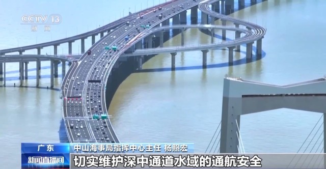 中山海事局指挥中心主任 杨照宏:我们还将加速调整深中通道防台浅水锚地,推动完善大桥防撞设施建设,及时更新海图信息等一系列措施,切实维护深中通道水域的通航安全。