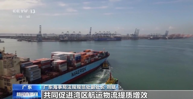 广东海事局法规规范处副处长 刘斌:下一步,粤港澳三地海事管理机构还将继续密切协作,加强水上交通事故险情、船舶违法违规信息相互通报,加快实施区内船舶安全检查协同机制,实现粤港澳三地高速客船检验标准协同,共同促进湾区航运物流提质增效。