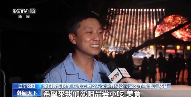 全国劳动模范、沈阳安运公共交通有限公司公交车驾驶员 慈君:俺们沈阳人欢迎全国各地的朋友来我们沈阳做客,希望来我们沈阳品尝小吃美食,到处游玩,我们沈阳棒棒的,非常热情。