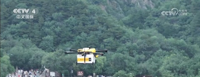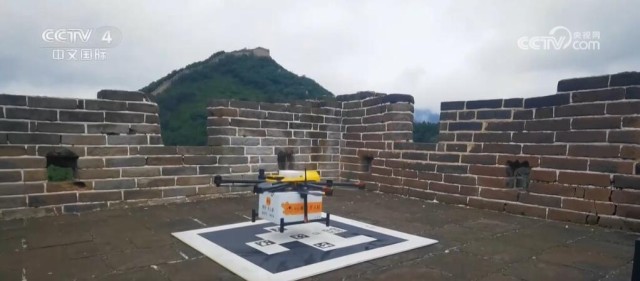 北京八达岭长城近期开通了无人机“送外卖”服务,最快5分钟,来自山下的酸梅汤、雪糕、创可贴等商品就能送到长城上来。记者来到长城这天小雨淅淅沥沥,在南九城楼的一处无人机送餐点,一位外国游客正在和中国朋友尝试用“外卖”送一把雨伞。