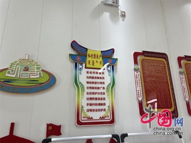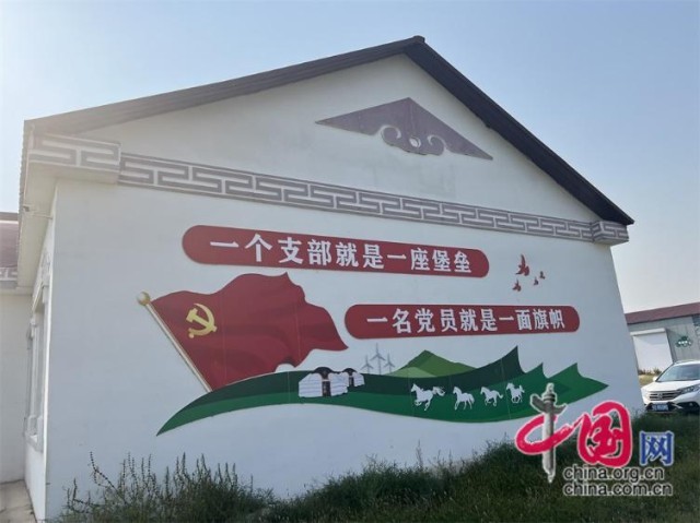 芒来嘎查党建服务中心外墙标语。中国网记者 吴佳潼 摄