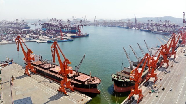 “畅通大通道,带动大物流。山东港口将更好发挥世界级港口群辐射带动作用,强化陆海统筹、扩大双向开放,织密‘一带一路’航线组群,拓展欧亚班列网络布局,以通畅高效的物流服务助力扩内需、稳外贸、保增长,成为连通国内外贸易的重要桥梁和全球重要的供应链枢纽。”山东省港口集团有限公司董事长霍高原说。
