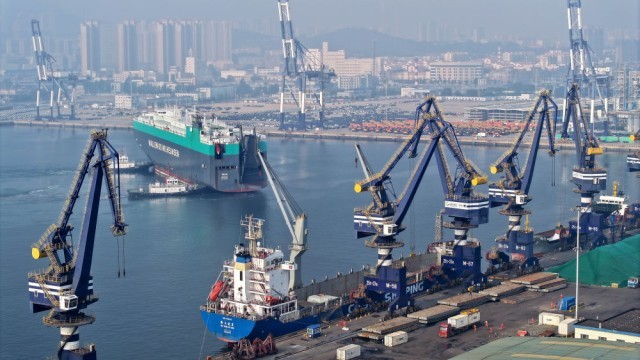 近日,装载着出口汽车的“比亚迪探索者1号”汽车运输船从山东港口烟台港起航。码头上,大型汽车运输船穿梭往来,来自郑州、西安、长沙等方向的数千辆出口汽车集结装运。今年上半年,烟台港完成商品车全模式运量36.7万辆,同比增长40.5%。