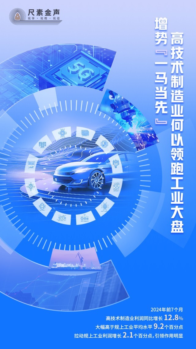 效益“高出一筹”。高技术制造业,往往研发投入大、产品附加值高、市场空间广。前7个月,高技术制造业利润同比增长12.8%,大幅高于规上工业平均水平9.2个百分点,拉动规上工业利润增长2.1个百分点,引领作用明显。