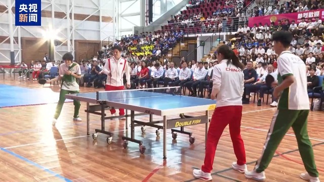 乒乓球运动员王楚钦、孙颖莎、樊振东、陈梦也与澳门乒乓球运动员进行了混编对战。