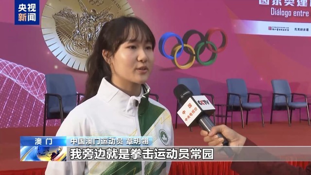 中国澳门运动员 章玥翎:我旁边就是拳击运动员常园,我和她交流时也问了很多运动员会发生的问题。我也和她说我(即将)有比赛,她也鼓励了我很多。
