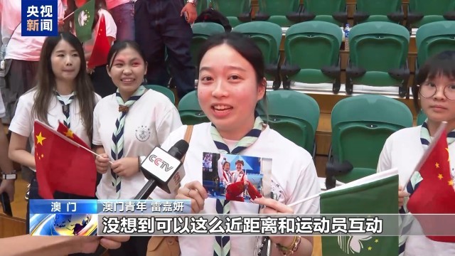 澳门青年 雷嘉妍:心情非常激动,没想到可以这么近距离和运动员互动。他们都很有心,看到我拿照片后,有的运动员帮我去找昌雅妮来签名,也很幸运可以向他们提问,因为一直都支持他们。