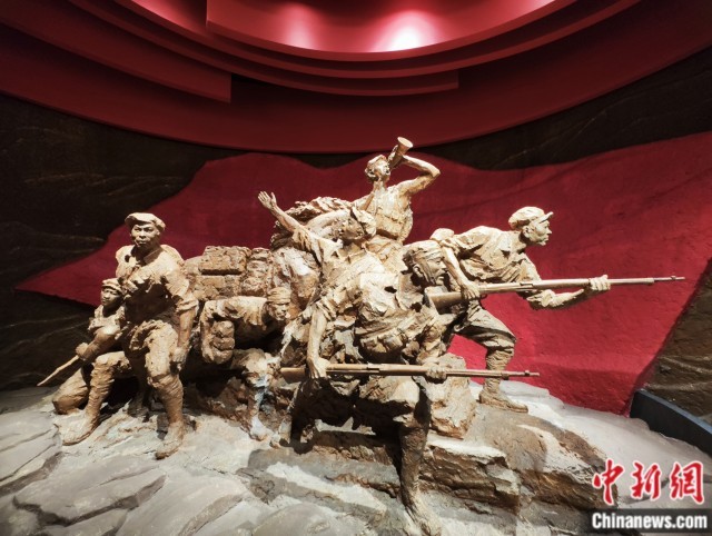 宁化县长征教育基地内,一组战斗中的红军雕像。刘越 摄