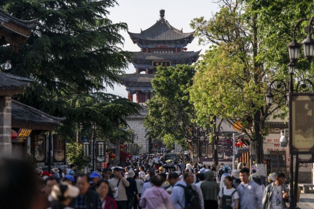 游客在大理古城参观游玩(4月14日摄)。新华社记者 胡超 摄