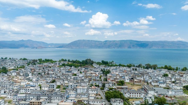 大理白族民居与洱海风景(无人机照片,5月6日摄)。新华社记者 胡超 摄