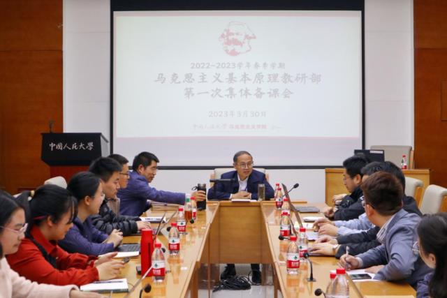▲中国人民大学举办《习近平新时代中国特色社会主义思想概论》集体备课会,党委书记张东刚领衔备课。