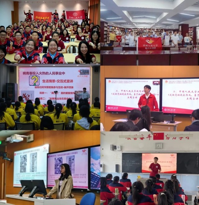 2021年7月,中国人民大学组建延河讲师团,打造一支大中小学思政教育一体化的青年宣讲“轻骑兵”,以青年声音宣传党的奋斗历程和伟大成就、光荣传统和优良作风、实践创造和理论创新,讲好“党旗下的思政课”。现已推出7个专题、116门精品课程,以革命老区、脱贫摘帽地区、民族边疆地区中小学校为重点,开展宣讲活动600余场,覆盖超过170万人次、3000所学校。