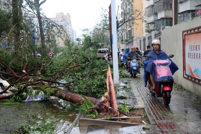 2024年9月7日,海口,一棵大树被“摩羯”从根部“斩断”。 视觉中国 图