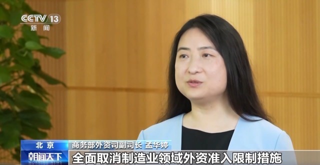 商务部国际贸易经济合作研究院副院长 张威:我觉得这次调整展现的就是扩大开放的信号。在准入这个环节,相当于我们在制造业领域实现了内资和外资的一个平等的待遇。未来我们还会进一步扩大外商投资鼓励类的产业指导目录,这样的一些调整会给外资在中国的发展创造更多的机遇。