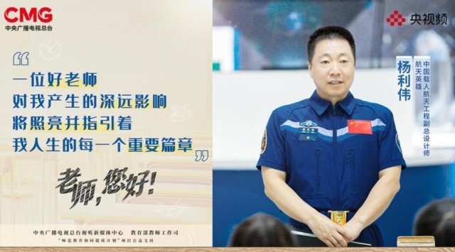 中国人自古对着宇宙有着无穷无尽的想象,两千多年前,屈原曾仰望苍穹发出《天问》,而在2003年10月15日,这片天空迎来第一位中国来客——杨利伟。9月12日,由中央广播电视总台视听新媒体中心、教育部教师工作司联合制作,“师范教育协同提质计划”项目公益支持的教育纪实节目《老师,您好!》在央视频APP上线,让我们一同跟随航天英雄、中国载人航天工程副总设计师杨利伟脚步,聆听他与恩师的故事,回顾中国载人航天事业的发展。