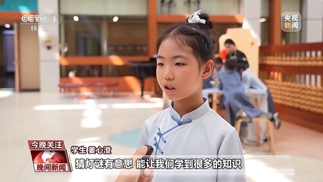 学生 姜心澄:猜灯谜有意思,能让我们学到很多的知识,让我们在玩乐中学习中国文化。