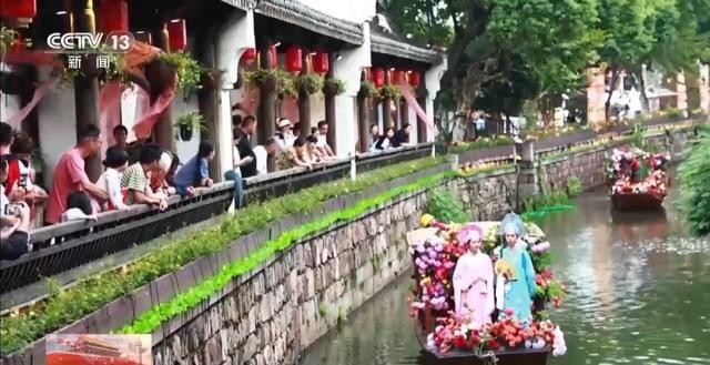 在浙江绍兴丰惠古镇,广大市民游客来到浙东运河,乘花舫巡游、拍国风照片、逛非遗集市……老街古戏台上演的梁祝主题戏曲晚会,每晚都吸引上千名游客驻足,大家“景中看戏、戏中赏景”,领略千年古镇的文化魅力。