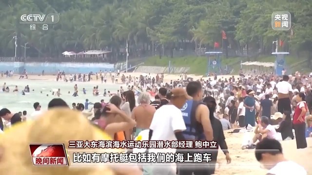 三亚大东海滨海水运动乐园潜水部经理 鲍中立:因为游客量增加,我们现在的话增加了大量的设备,比如有摩托艇,包括我们的海上跑车,同样我们也增加了潜水教练,保证客人的话过来就可以不用等待。