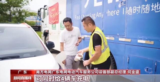 为应对“国庆”假期新能源汽车充电高峰,广东电力部门安排3600多名工作人员现场值守,并且还在省内高速干线6个关键枢纽服务点,部署了12台液化天然气移动补电车及移动充电宝。