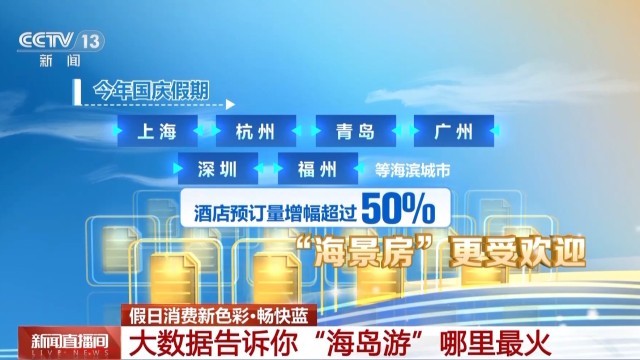 上海、杭州、青岛、广州、深圳、福州等海滨城市的酒店预订量增幅超过50%,“海景房”更受欢迎。