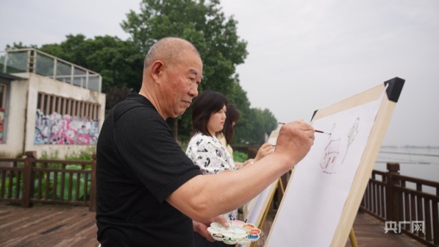 油车港农民作画(央广网记者 尚天宇 摄)
