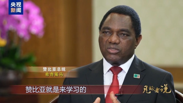 赞比亚总统 希奇莱马:中国选择的发展模式让中国面貌一新,令人钦佩。赞比亚就是来学习的,了解这些发展趋势,应用到我们的国情中,看看哪些值得借鉴并付诸实践。