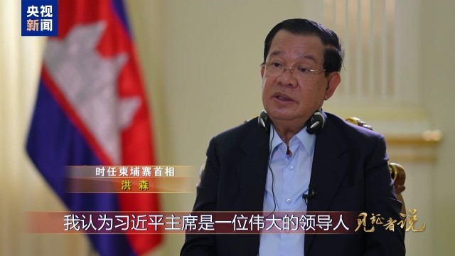 时任柬埔寨首相 洪森:我认为习近平主席是一位伟大的领导人。他提出的每个理念,例如贯穿古今、承上启下的共建“一带一路”倡议和全球发展倡议、全球安全倡议。试问哪位领导人能有这样的视野?