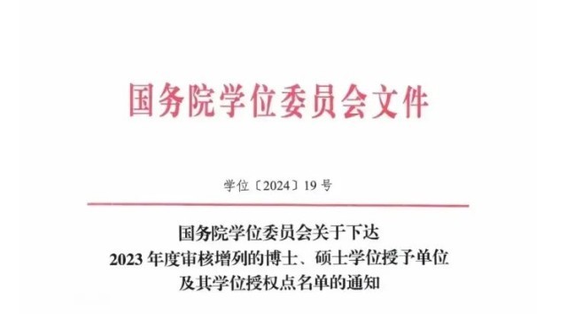 日前,国务院学位委员会下达关于2023年度审核增列的博士、硕士学位授予单位及其学位授权点名单的通知。