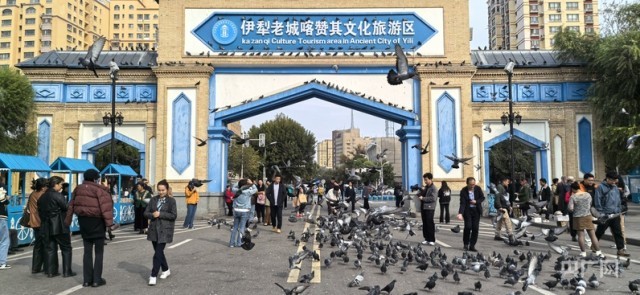 游客在伊宁市喀赞其文化旅游区游玩 (央广网记者丁安 摄)