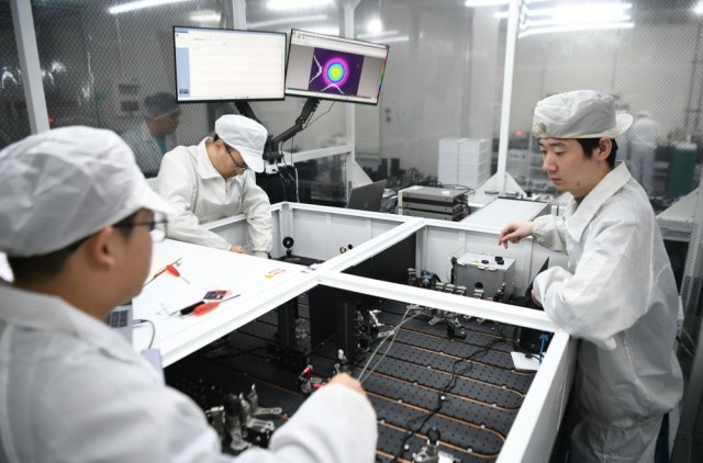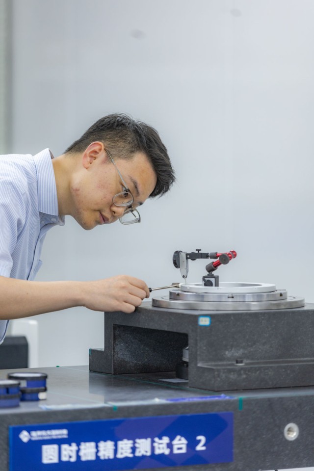 7月19日,在位于重庆市高新区的通用技术集团国测时栅科技有限公司,研发人员在圆时栅精密测试台对产品进行测试。