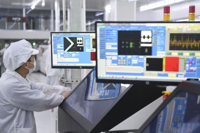 9月20日,在位于重庆市璧山区的重庆康佳光电科技有限公司,工作人员在MLED直显生产车间作业。