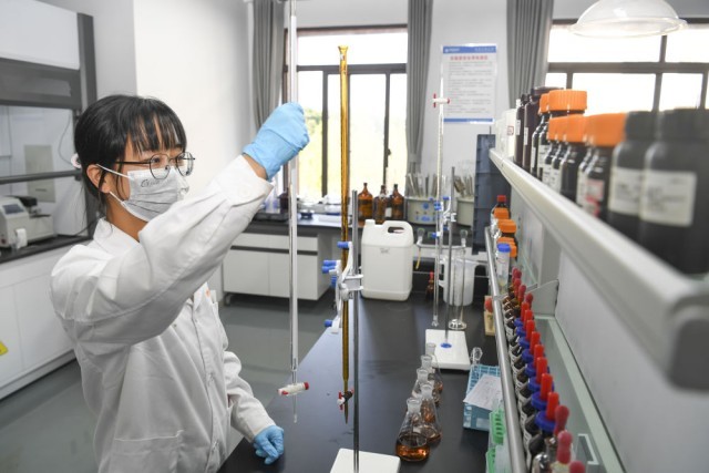 10月23日,在位于重庆长寿经开区的康普化学技术研究院,工作人员在实验室工作。