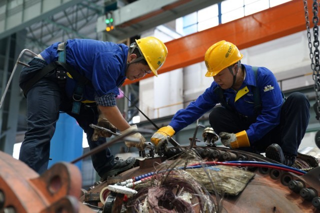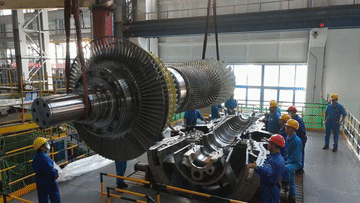 在位于四川省德阳市的东方汽轮机有限公司生产车间内,工作人员对G50进行开缸前的检查准备(10月21日摄)。