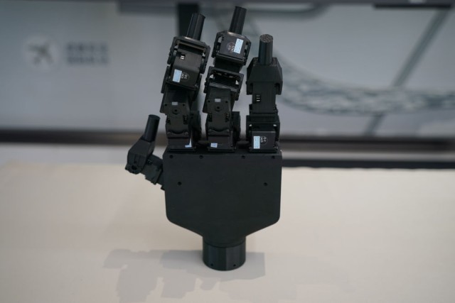 在位于四川省成都市的航空国创中心拍摄的人工智能与灵巧机器人联合实验室研发的灵巧手(10月24日摄)。