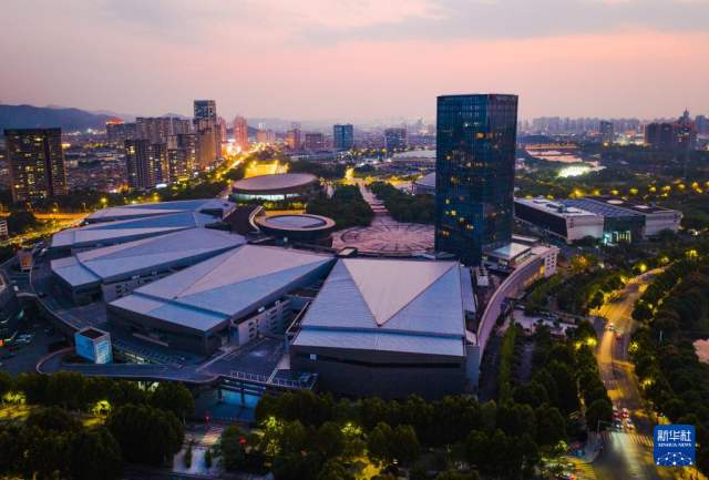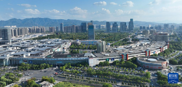 鸟瞰义乌国际商贸城(无人机照片,9月6日摄)。新华社发(何锦程摄)