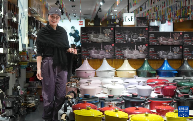 义乌创艺厨具创始人刘萍娟在她的厨具店里(10月9日摄)。新华社记者 翁忻旸 摄