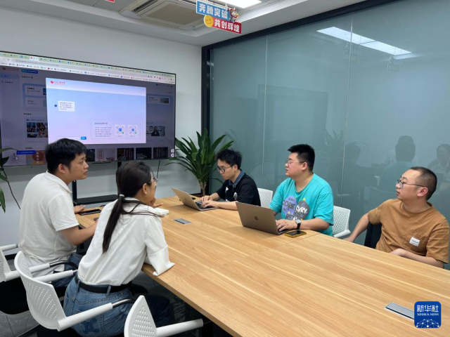 Chinagoods AI智创服务平台的技术人员在讨论一款新产品的设计(5月17日摄)。新华社发