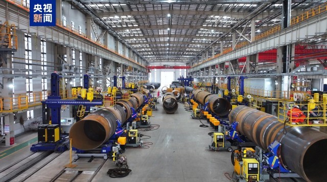 海油工程天津智能制造基地分两期进行建设,自2022年6月一期工程投用以来,完成35座海洋平台建造,累计出货超过8.7万吨,产线整体工效提升近20%,总装效率提升30%以上,推动我国海洋装备制造从传统“人力”模式向现代化“智能工厂”跨越。