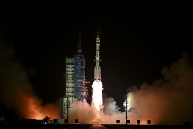 2024年10月30日,搭载神舟十九号载人飞船的长征二号F遥十九运载火箭在酒泉卫星发射中心点火发射。新华社记者 李鑫 摄