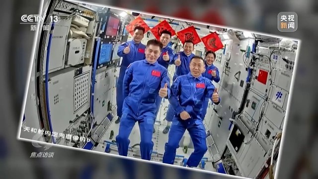 重返中国空间站的神十九航天员蔡旭哲打开舱门,再次体验失重,他轻松地就从飞船进入空间站节点舱,和等待他们到来的神十八乘组来了一个大拥抱。第一次进入空间站的两位“90后”航天员也同样受到了热烈的欢迎。在打扫一新的空间站核心舱,欢迎仪式必不可少。