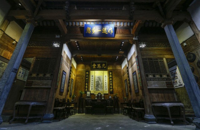 这也是一段“和”的美谈。清代道光年间,开封知府胡文照在修缮祖居时,考虑到行商走贩拉货挑担不易,主动将处于闹市的正屋墙角削去三分、侧门墙界后退半米,并在门额题写“作退一步想”。2020年初,黟县集中资源将“大夫第”修旧如旧,恢复了“九思堂”的名号,在大厅悬挂了四副诠释“作退一步想”内涵的楹联。