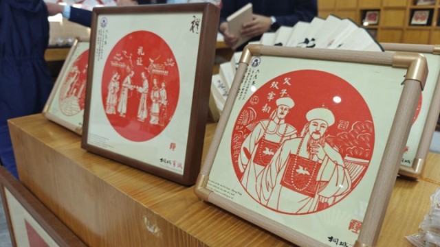 这是2024年11月2日在安徽省桐城市六尺巷口“礼让邮局”拍摄的剪纸作品。新华社记者 陈诺 摄
