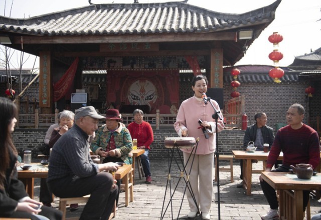 “大鼓一敲开了言,我给客官唱一段……”临涣古镇内,时常响起嘹亮的淮北大鼓说书声。一出《临涣茶馆》在保留传统鼓书表演形式的同时,创新融合民乐伴奏等表现形式,生动呈现饮茶议事文化的由来与发展。当地还通过设立“棒棒茶”文化节,借助微电影、乡村小喇叭等多种渠道,弘扬这一优秀传统文化。