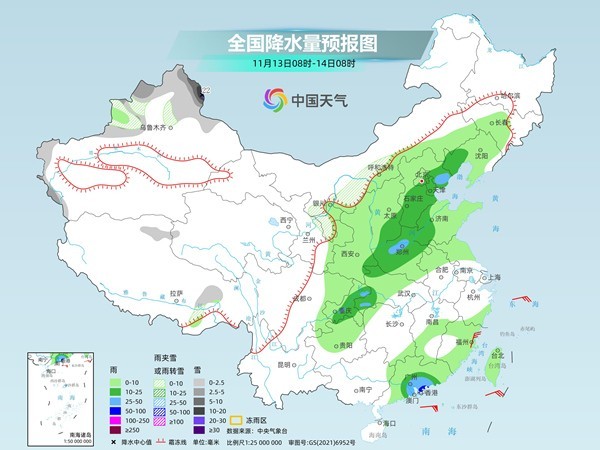 具体来看,中央气象台预计,今天,内蒙古河套地区、黑龙江东北部、新疆北疆北部和南疆盆地、西藏东部、青海东部和南部、甘肃南部、宁夏北部、陕西北部、山西北部、川西高原北部等地部分地区有小到中雪或雨夹雪,其中,新疆北疆北部和北疆东部等地部分地区有大到暴雪,局地大暴雪(20~28毫米)。西北地区东部、华北大部、黄淮、江淮西部、江汉大部、西南地区东部、云南西南部、广东东南部、海南岛、台湾岛等地部分地区有小到中雨,其中,湖北南部、重庆中西部和东北部、台湾岛北部和东部等地部分地区有大雨(25~45毫米)。