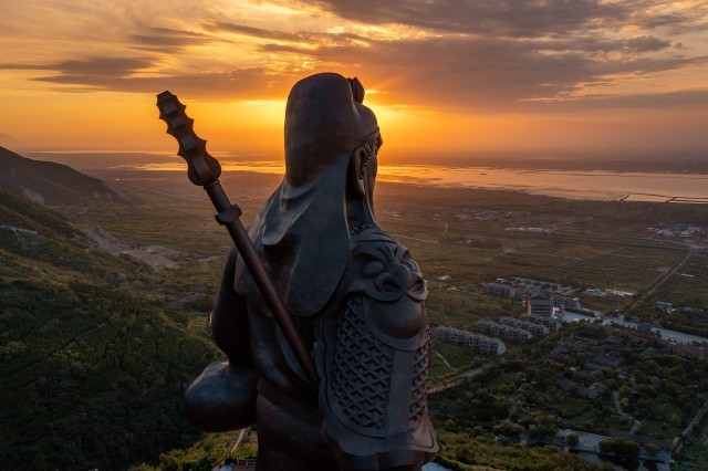 “关帝圣像”从中条山上“俯瞰”运城盐湖和三晋大地。 视觉中国 图